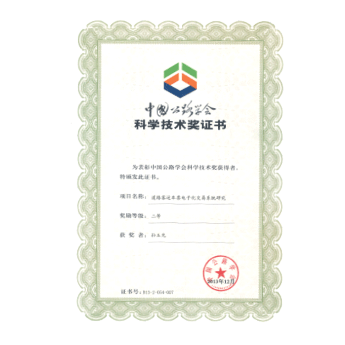总经理孙玉光,2013年12月在“道路客运车票电子化交易系统研究”项目中,获得中国公路院学会科学技术奖项“二等奖”。