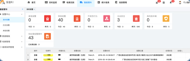 当运输过程中出现安全隐患或驾驶员不规范驾驶时,系统及时预警,为企业监控人员及安全管理人员及时处理安全隐患提供技术工具。